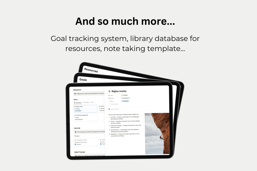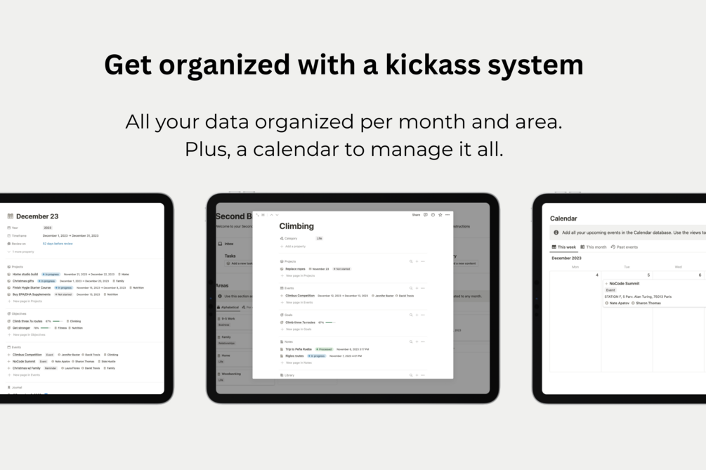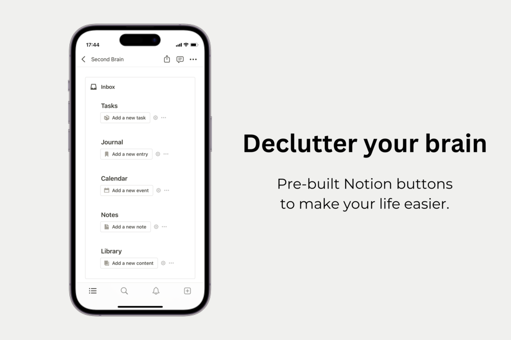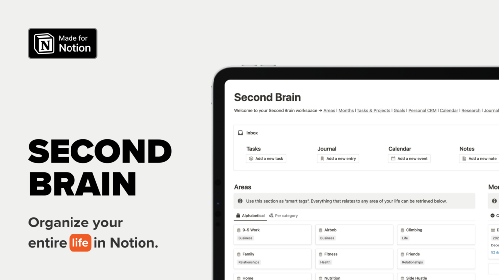 The Second Brain Notion template is your external hard drive for life. A calm, structured space where everything important has its place—so your mind can breathe, focus, and create.