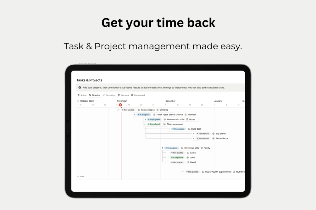 - A powerful yet simple task manager – with subtasks, deadlines, and a timeline view.