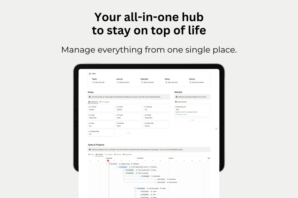 - A home for everything – tasks, notes, events, goals, habits, people, ideas, and resources.