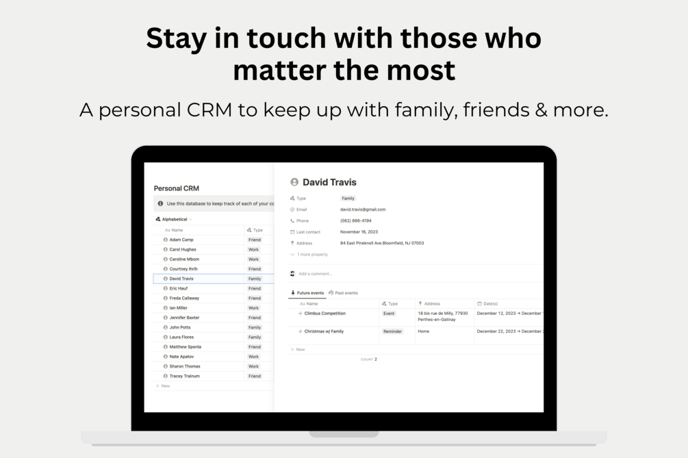 - A personal CRM – never forget a birthday, a promise, or a meaningful moment.