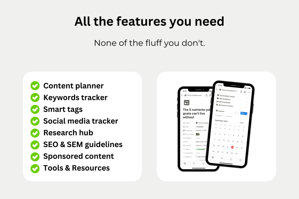 Additionally, you'll be able to track your social media posts, store & analyze your keywords, research topics, & more.