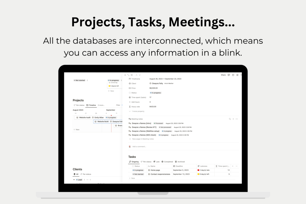 This is more than a Notion template. It's an all-in-one dashboard that helps you manage all aspects of your business, so that running it feels enjoyable and not like a chore. This tool is the most downloaded template I've ever built, adopted by over 100 freelancers like you.