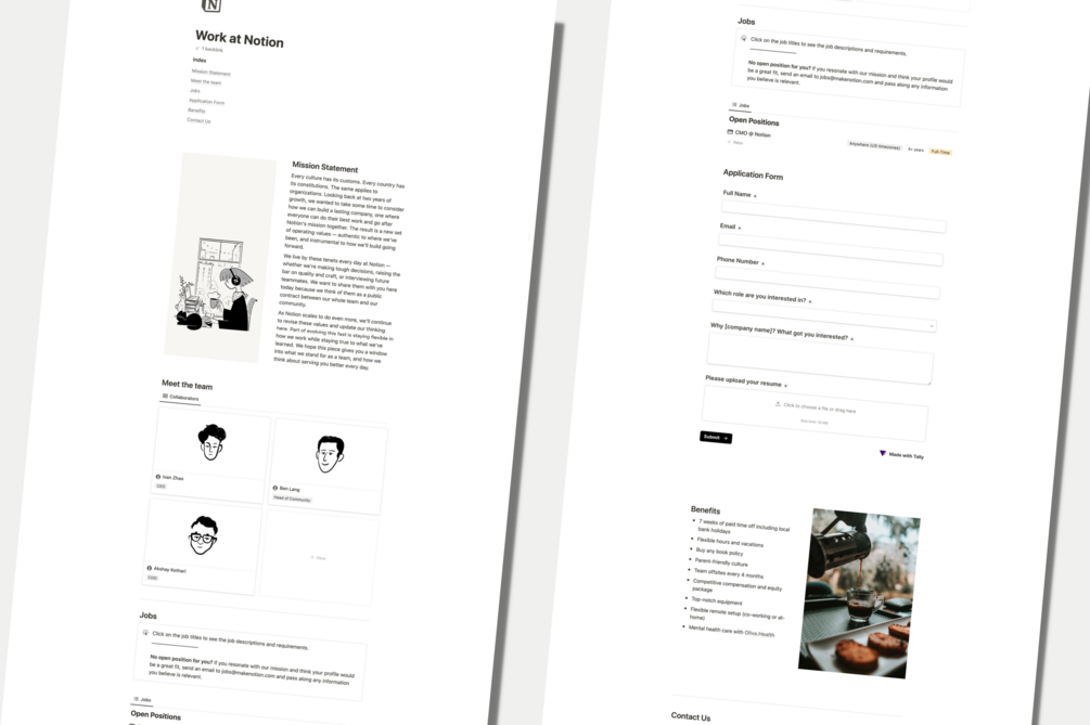 - Beautiful careers page website with mission statement, meet the team, benefits, etc.
